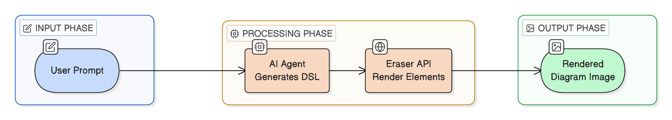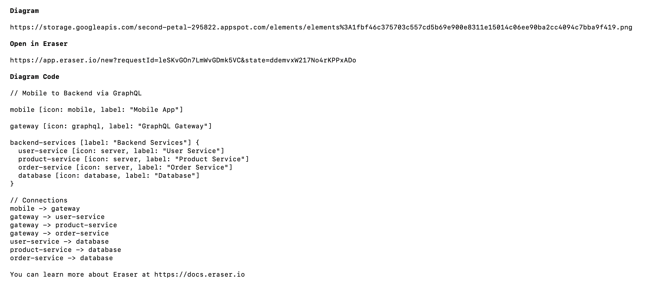 - Eraser returns a rendered diagram image link